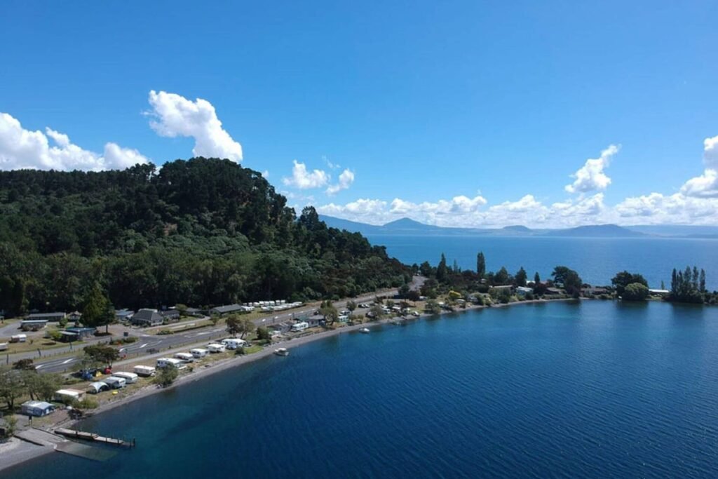 Though technically outside Taupō township, this TOP 10 park sits right on the lakefront and offers some of the best views you’ll find. It’s quieter than the in-town options and has direct access to swimming, kayaking, and lakeside walks.