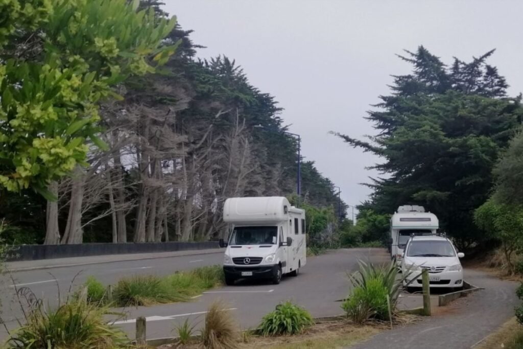 This coastal freedom camping spot sits just across from Thomson Park, giving travellers easy access to open green spaces and the beach. It’s within the Christchurch Coastal Restricted Zone, which means stays are limited, but it’s an excellent option for certified self-contained vehicles looking for a budget-friendly overnight stop.