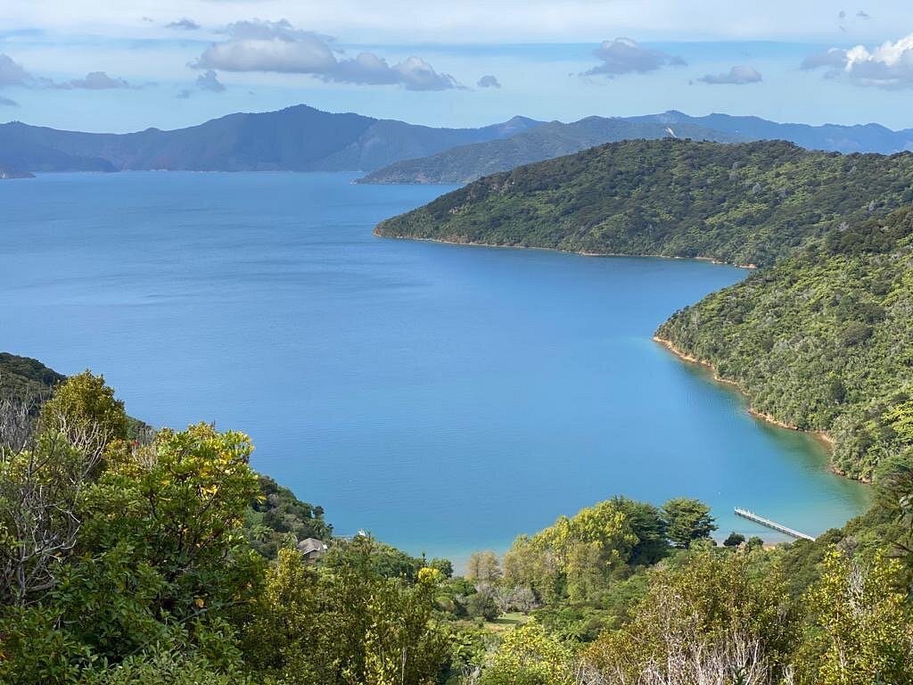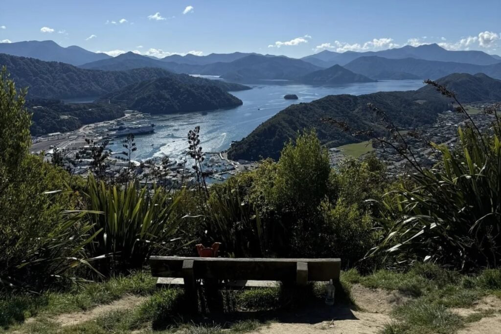 The Tirohanga Track is a rewarding out-and-back walk that begins near the heart of Picton and climbs steadily through shaded forest. The trail is well-formed and easy to follow, with scattered steps along the way. At the top, the Hilltop View lookout delivers sweeping views of Picton, the harbour and the sparkling blue of Queen Charlotte Sound.