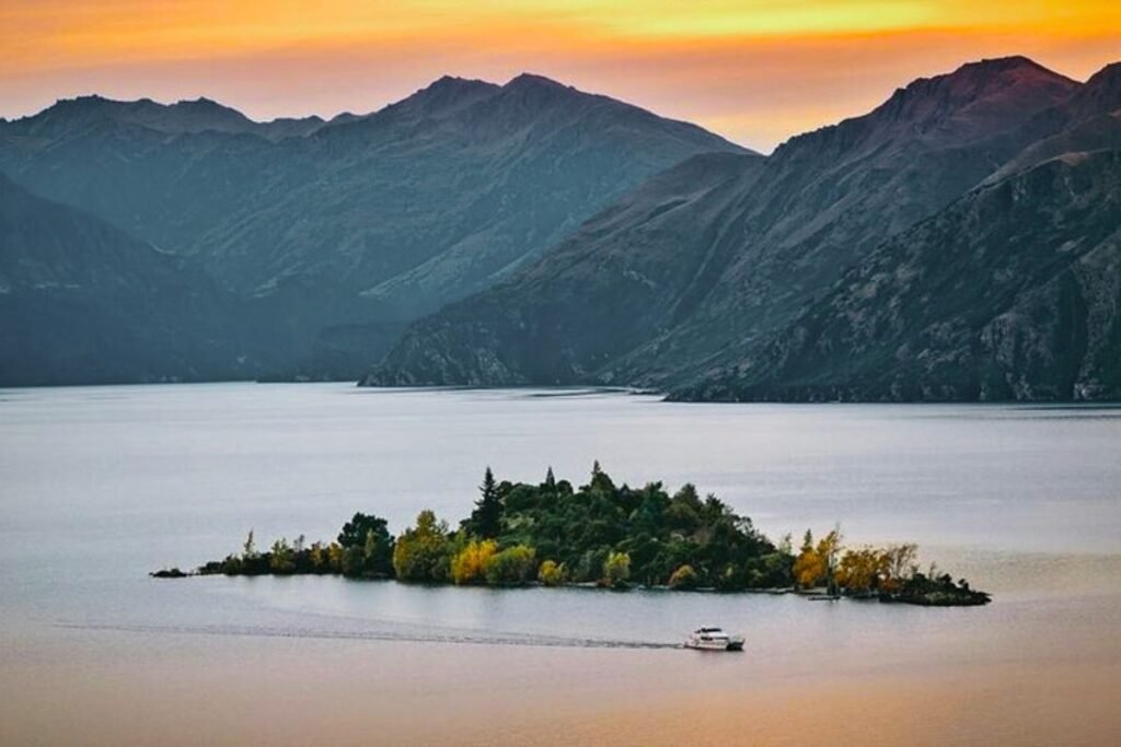 There’s nothing like finishing a day of exploring with a gentle evening cruise across Lake Wanaka. The water reflects the surrounding mountains in a way that feels almost surreal, and the pace slows to pure relaxation. You’ll sip on local wine, enjoy a cheese board and watch as the lake reveals its quiet beauty. Along the way, you’ll drift past Ruby Island, hidden bays and the famous Wanaka Tree.