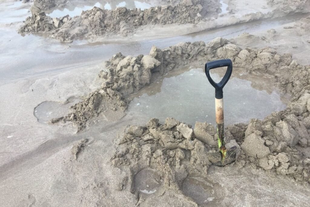 - Bring or hire a shovel from nearby cafés or holiday parks.