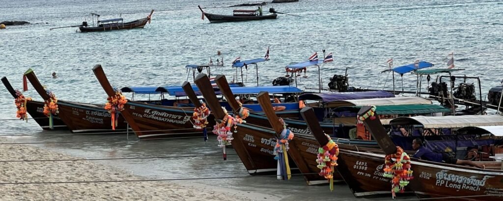 We arrived by boat from Koh Lanta and immediately understood why Koh Phi Phi is often described as paradise. Sailing in between the islands, the water turns impossibly blue, traditional longtail boats line the shore and limestone cliffs rise dramatically around you. From the water, it is breathtaking.
