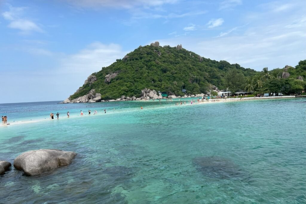 - Just a short boat ride from Koh Tao, Koh Nang Yuan is a breathtaking trio of tiny islands linked by sandbars. It’s famous for its crystal-blue water, pristine beaches and vibrant marine life, making it one of the most photographed spots in the region. You do need to pay an entry fee to access the island but many visitors agree it’s worth it. Although not my favourite spot because of the crowds, I have to admit it was so stunning it was worth the visit. We lined up for the viewpoint hike but turned back after an hour, as the queue moved slowly with people stopping for long photo sessions. Even so, the sandbar was incredible to walk across and the snorkelling was pleasant, with colourful fish darting around the shallows.