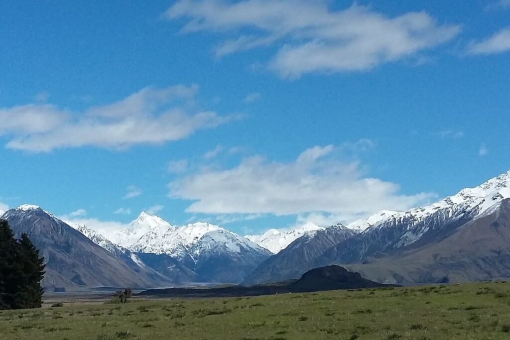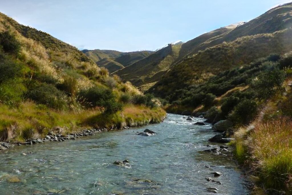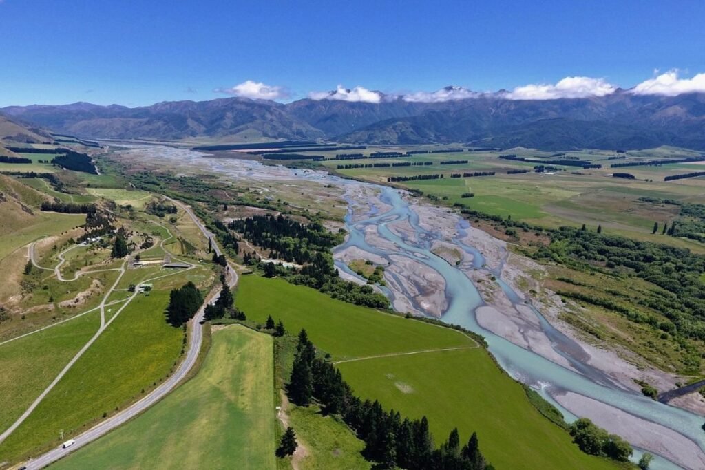 The landscapes shift constantly along the way. Coastal cliffs give way to high country valleys. Turquoise rivers wind through golden tussock hills before rising into the rugged peaks of the Southern Alps.