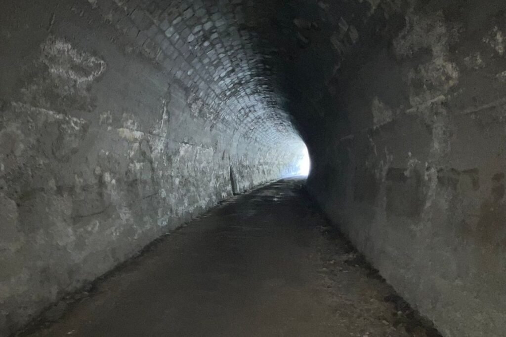 • A curved railway tunnel and historic camp sites