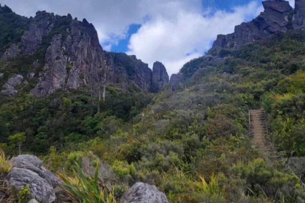 The English name “The Pinnacles” refers to the jagged rock spires that crown the summit. These dramatic formations were shaped by volcanic activity and centuries of erosion. They rise sharply from the ridgeline, offering a 360-degree view across the Coromandel Peninsula.