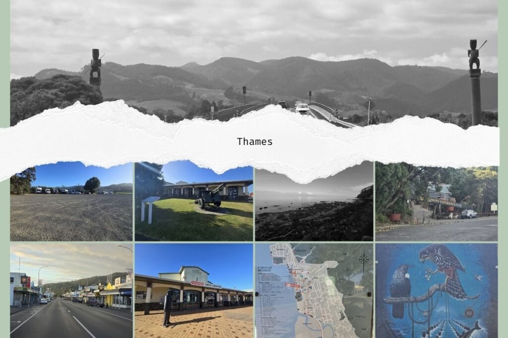 Coming in from the south, you’ll cross the bridge into Kōpū, marked by carved pou at the entrance. From there, it’s a left turn toward Thames.