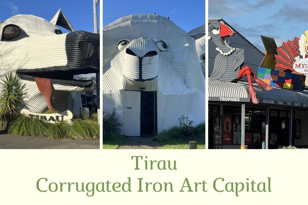 - Iconic corrugated-iron art — The town is famously home to large buildings shaped like a sheep and a dog, made out of corrugated iron, promoting Tirau’s title as the “Corrugated Capital of the World.”